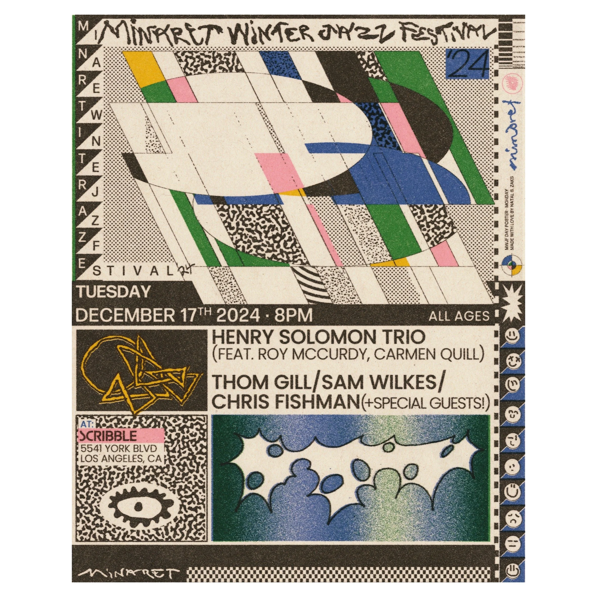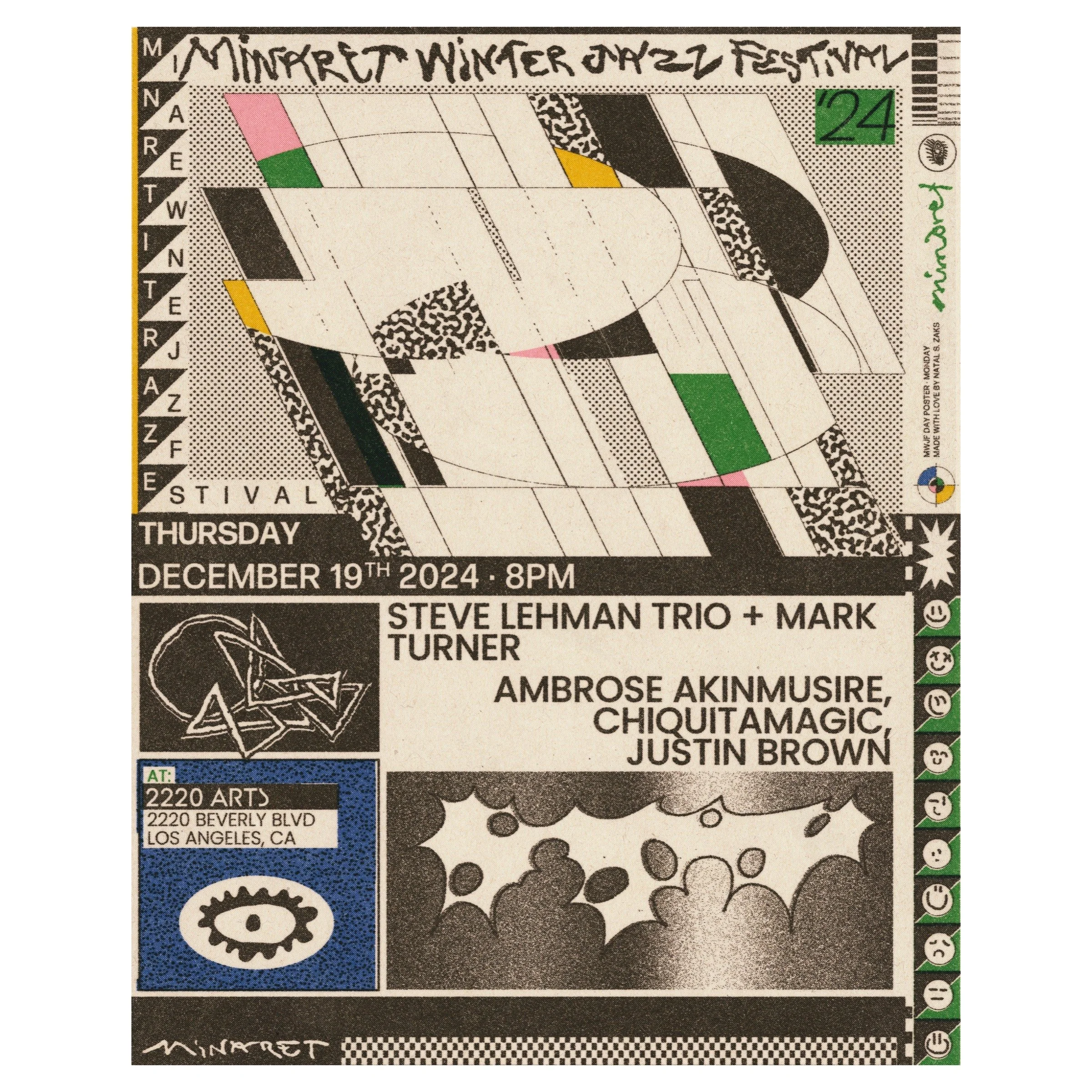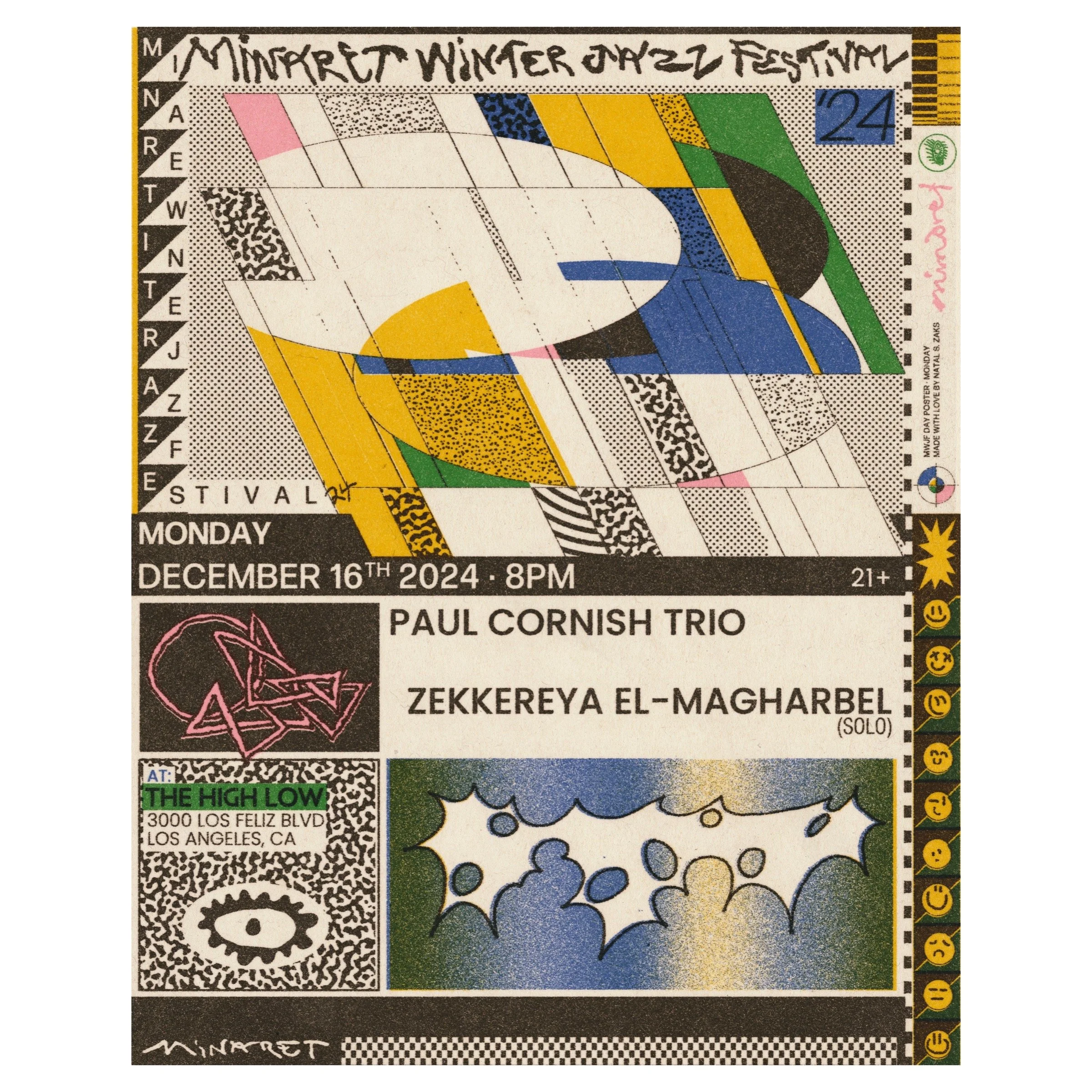 Groups: Paul Cornish Trio • Zekkereya El-Magharbel (Solo) • Yibs • Genevieve Artadi • Steve Lehman Trio + Mark Turner • Ambrose Akinmusire, Chiquitamagic, & Justin Brown • takoda / telemakus / miguel atwood-ferguson • Thom Gill / Sam Wilkes / Chris Fishman •